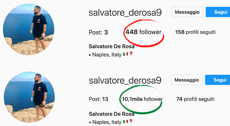 Siamo molto rapidi, in 48-72 ore lavorative vedrai già crescere il tuo profilo